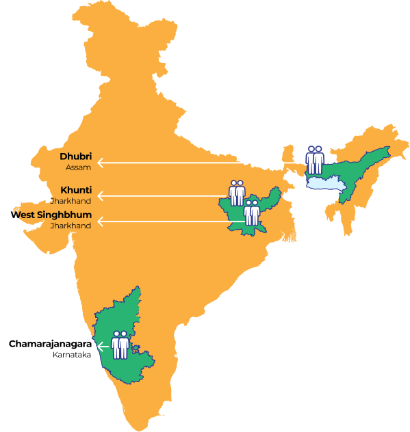 IHCRF focuses on addressing health challenges by equipping a new generation of public health and social sector fellows. These fellows are currently embedded in five districts across four states- Khunti and West Singhbhum (Jharkhand), Dhubri (Assam), Chamarajanagar (Karnataka), and Medchal (Telangana)- where they work closely with local communities and district administrations to identify contextual problems and co-create climate resilient solutions rooted in real-world needs.